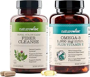 NatureWise Total Colon Care Fiber Cleanse y Omega 3 cápsulas de aceite de pescado [60 unidades cada una]
