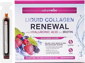NatureWise Colágeno Líquido Hidrolizado para Mujeres y Hombres 4000mg – Alta Absorción, Péptidos de Tipo 1 y 3 con Biotina + Vitamina C + Complejo de Vitamina B & Ácido Hialurónico